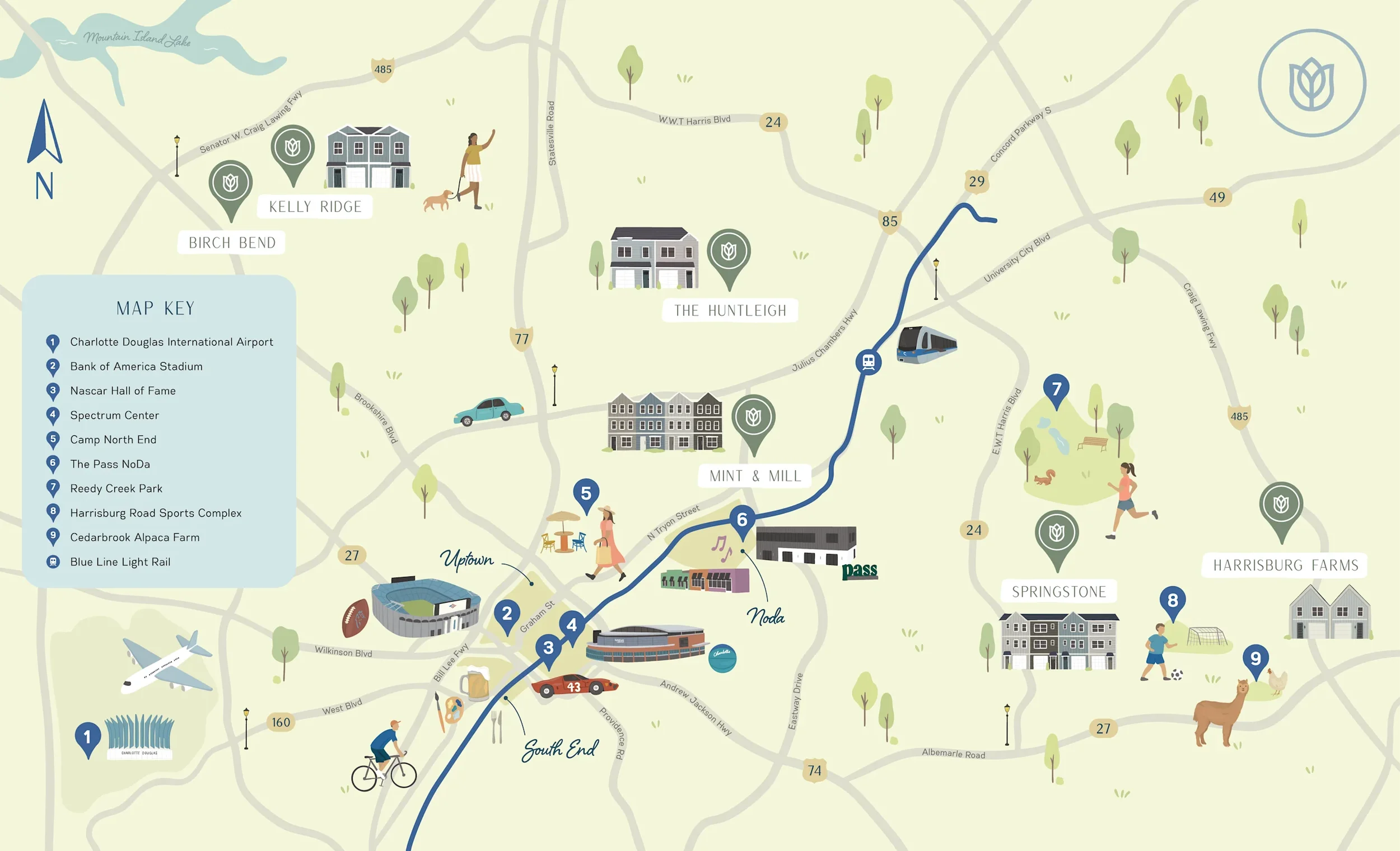As part of the Stella Homes family, Kelly Ridge was created for those who value connection, comfort, and convenience. This intimate collection of contemporary rental homes offers more space to live freely and more time to enjoy what matters most. Like our sister communities—The Huntleigh, Mint & Mill, Springstone, Birch Bend, The Towns at Braselton, and Harrisburg Farms—Kelly Ridge is thoughtfully placed near Charlotte’s most vibrant destinations, from the energy of Uptown and NoDa to the serenity of Reedy Creek Park and nearby green spaces. Wherever your days take you, coming home to Kelly Ridge feels like a breath of ease in the middle of it all.
